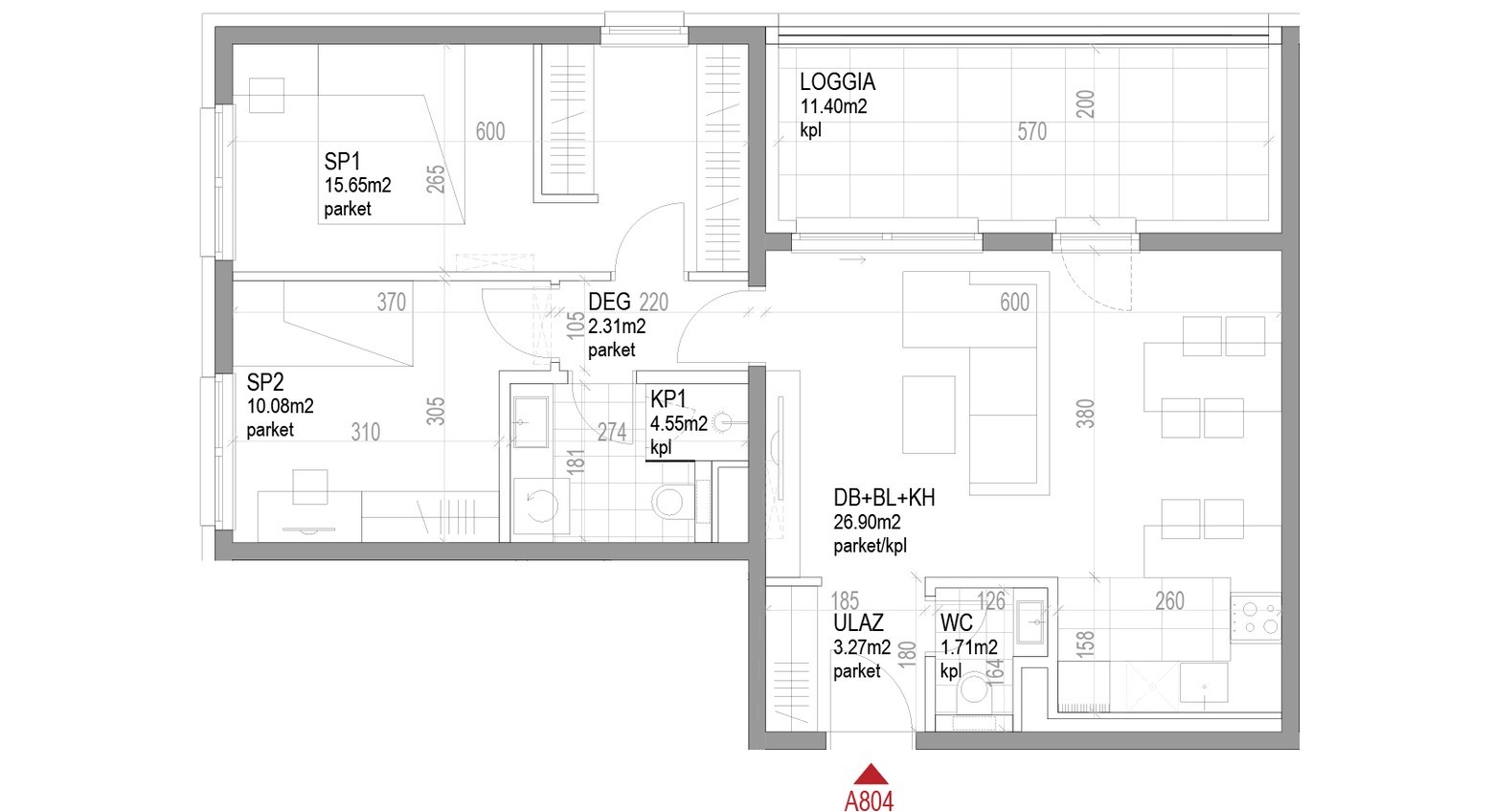 OTVORENI PROSTOR 11,40 m2 8,55 m2